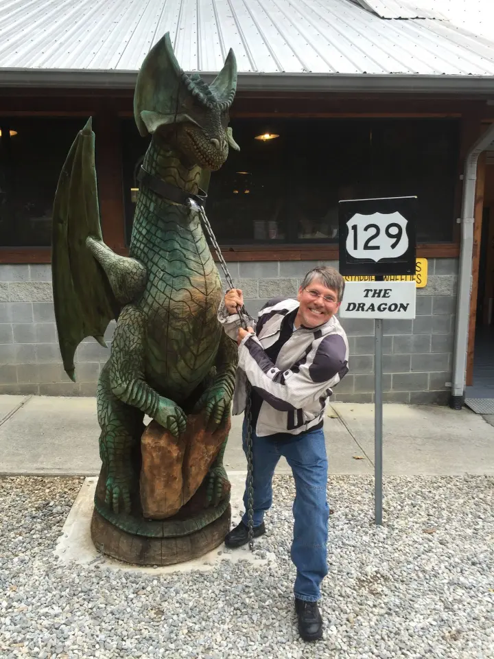 Rode pretty hard back down to Deal’s Gap for lunch, and to get my photo taken taming the Dragon again.